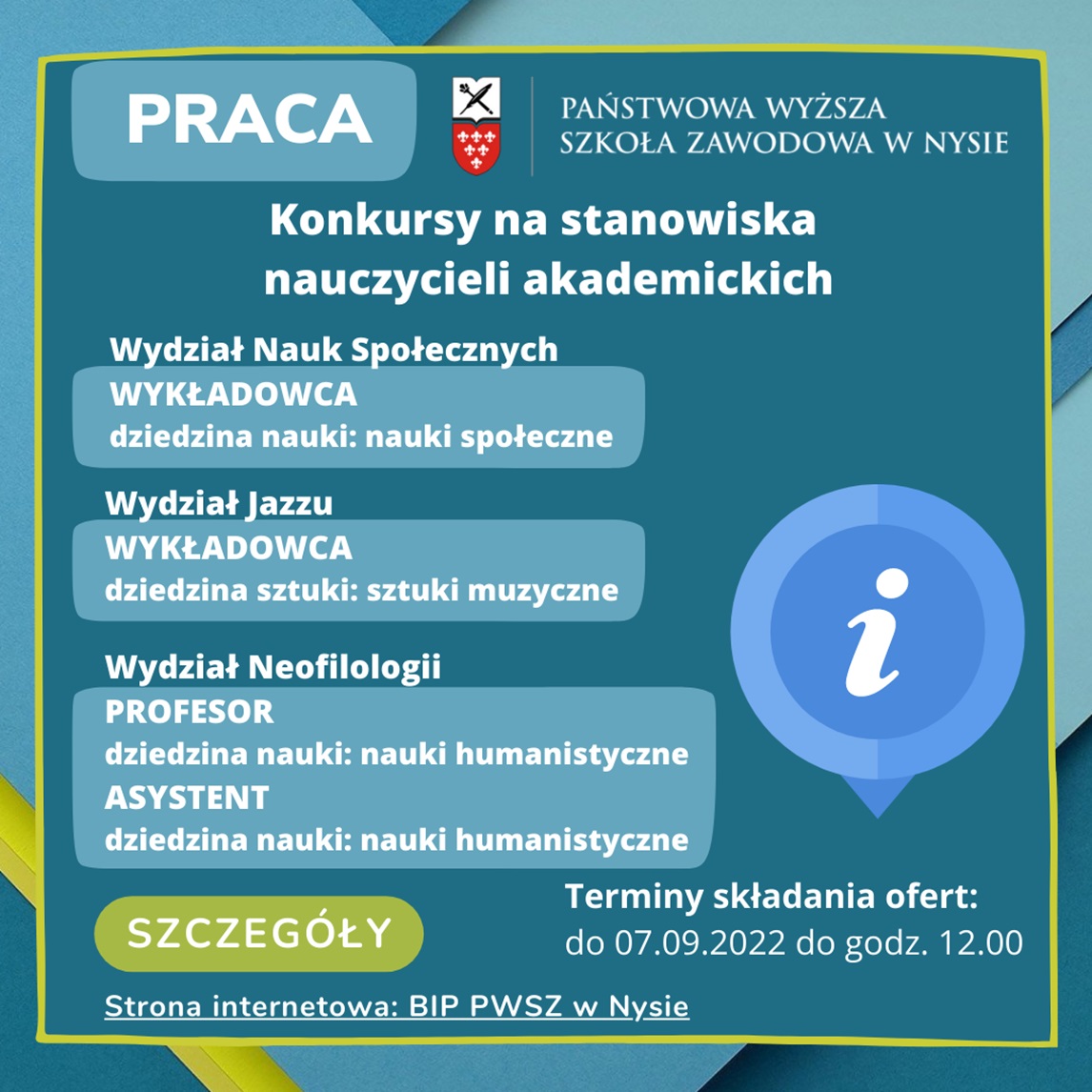 Wszystkie konkursy to zatrudnienie na pełny etat, na umowę o pracę od 01.10.2022 r.
