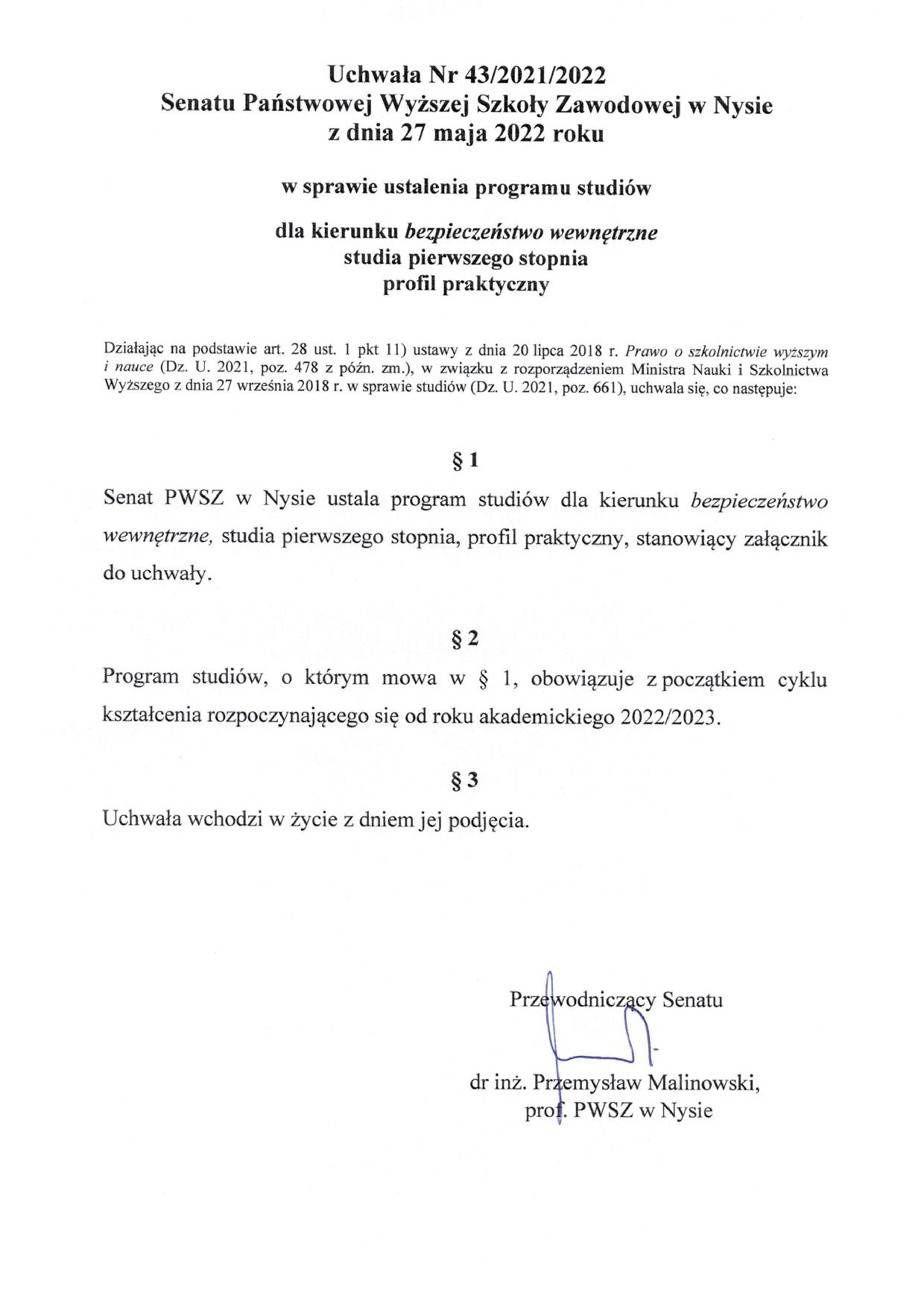Uchwały Senatu nr 43 i 44