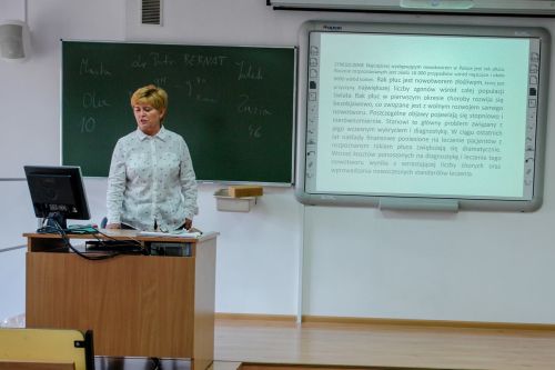 mgr Mariola Chwalenia podczas wykładu "Ile finansowo kosztuje lekceważenie zdrowia"